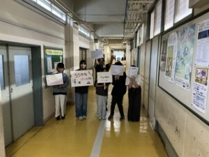 10月が始まりました。朝からあいにくの雨となりましたが、子どもたちは傘をさして元気に登校してきました。今日はオンラインで朝会を行いました。子供たちは教室で静かに画面を見つめ、しっかりと話を聞いていました。雨で校庭が使えない休み時間には、教室で本を読んだり、友だちとおしゃべりを楽しんだりと、それぞれ思い思いに過ごす姿が見られました。計画委員会の児童が、自分たちで作った呼びかけの文を手にして「廊下の歩き方」の声がけをしていました。校舎内で過ごすことが多い一日。とてもタイムリーな取組でした。