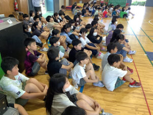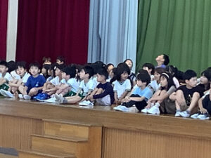 本校マーチングバンドが、利府町で行われた県大会に出場しました。県大会に先立ち、昨日の朝会で全校児童の前で演奏・演技を披露しました。全校児童からの温かい拍手に包まれ、子どもたちの表情もいっそう引き締まった様子でした。
